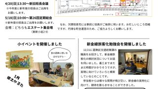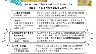 4月20日(日)13:30~ 新旧班長会議(URエステート集会所)5月18日(日)10時開会 第26回定期総会(URエステート集会所)25日(日)9時~ クリーン作戦町会費納入日本赤十字募金入学祝(小・中学校 申告制、加入マンション含む町会...